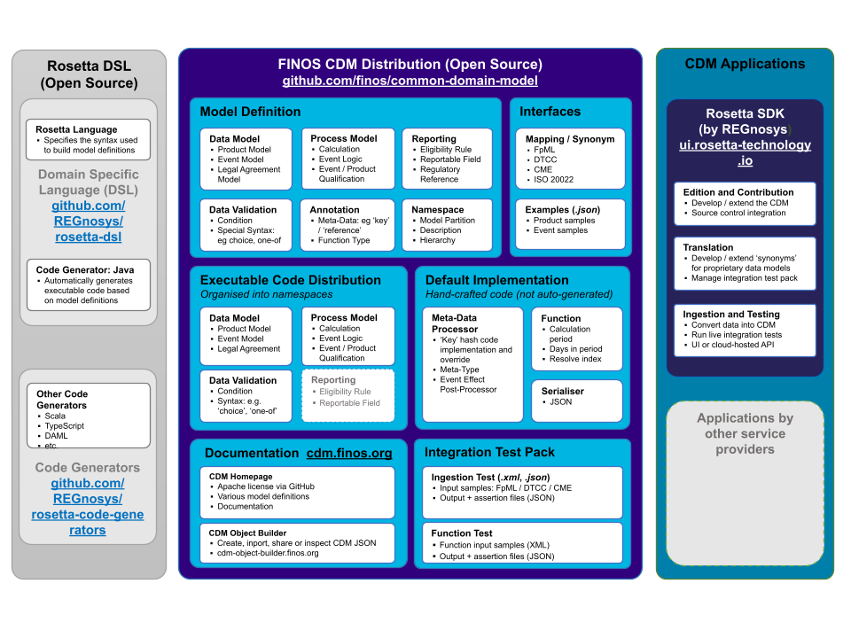 The FINOS CDM distribution comprises three main sets of components: